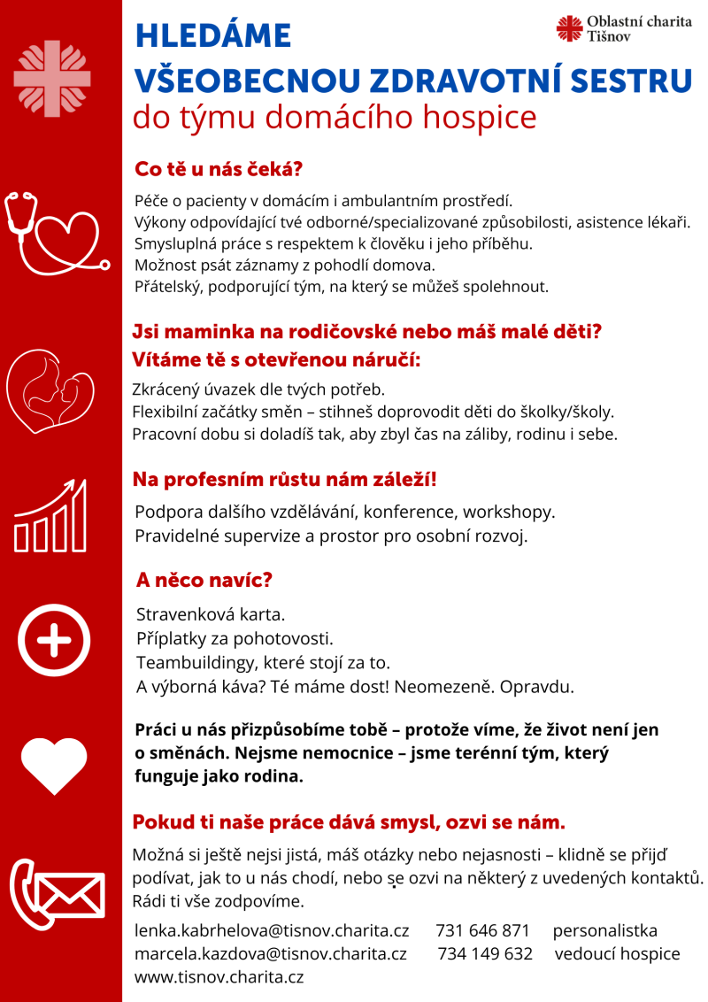 marcela.kazdova@tisnov.charita.cz, 734 149 632, vedoucí hospice