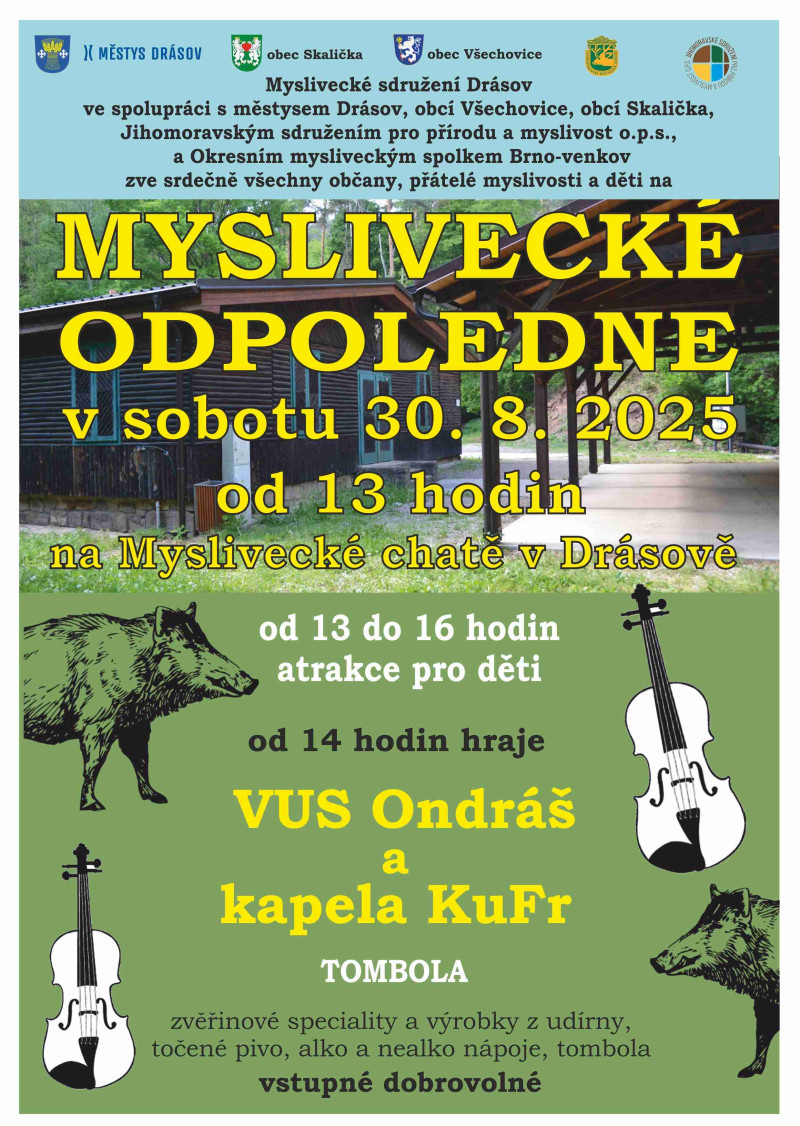 v sobotu 30. 8. 2025 od 13 hodin na Myslivecké chatě v Drásově