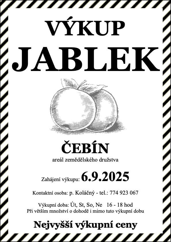 Kontaktní osoba p. Koláčný, tel. 774 923 067
