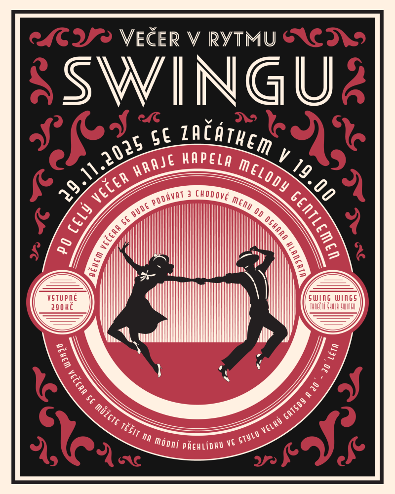 Nejde jen o tanec – jde o atmosféru, styl a pocit, že jste se na chvíli ocitli ve 20. a 30. letech. Přijďte si užít večer plný hudby, elegance a skvělé atmosféry – i když netančíte, budete se bavit od první chvíle.
