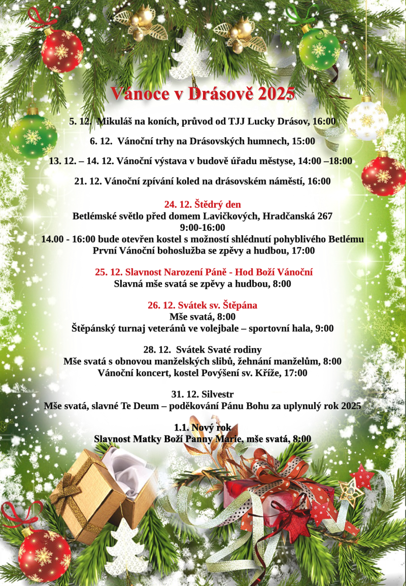 - Vánoční zpívání koled na drásovském náměstí, 16:00