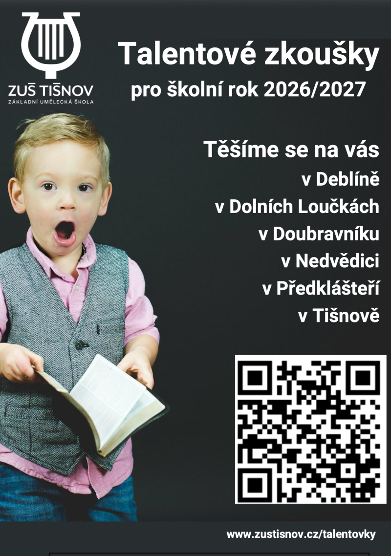 Základní umělecký škola Tišnov informuje o termínech talentových zkoušek pro školní rok 2026/2027, všechny informace najdete na této stránce