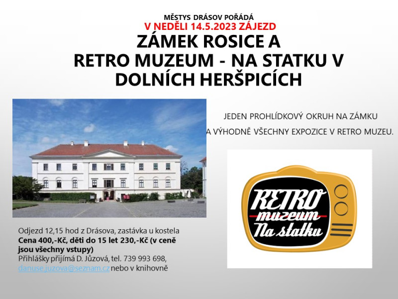 Zájezd na zámek Rosice a do Retro muzea Dolní Heršpice 14. 5. 2023