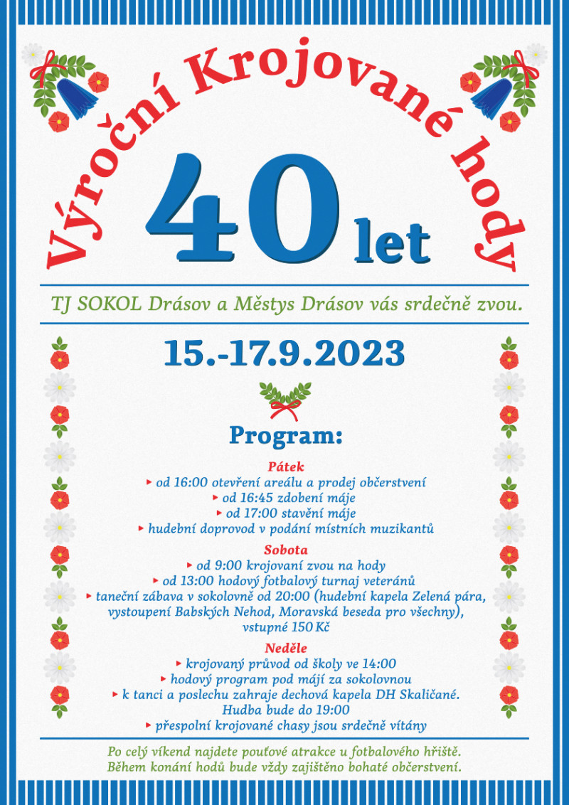 TJ Sokol Drásov a Městys Drásov vás srdečně zvou na