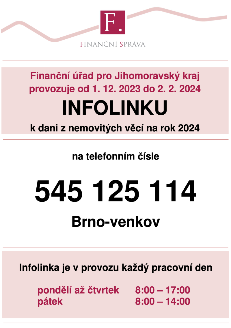 FÚ provozuje infolinku k dani z nemovitých věcí na rok 2024