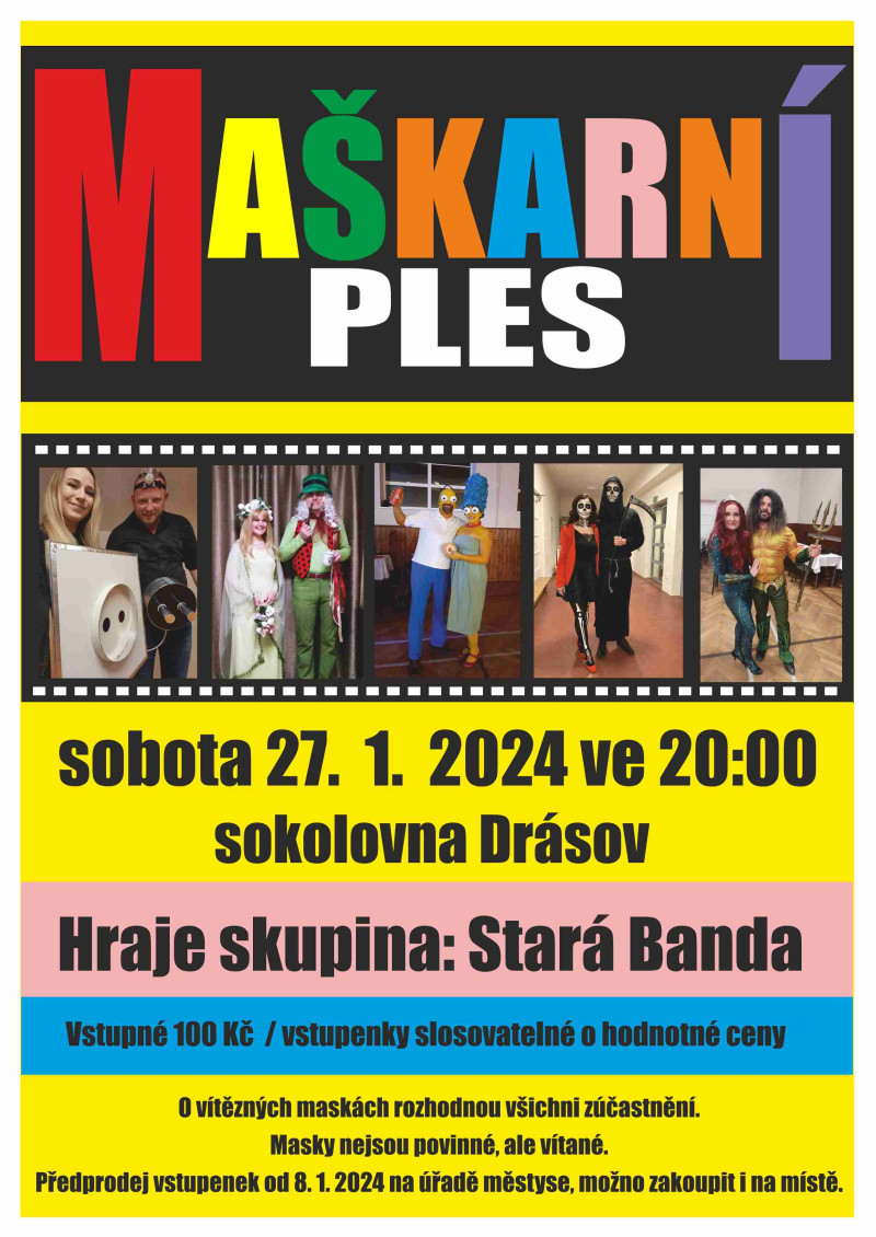 Předprodej vstupenek od 8. 1. 2024 na úřadě městyse, možno zakoupit i na místě.