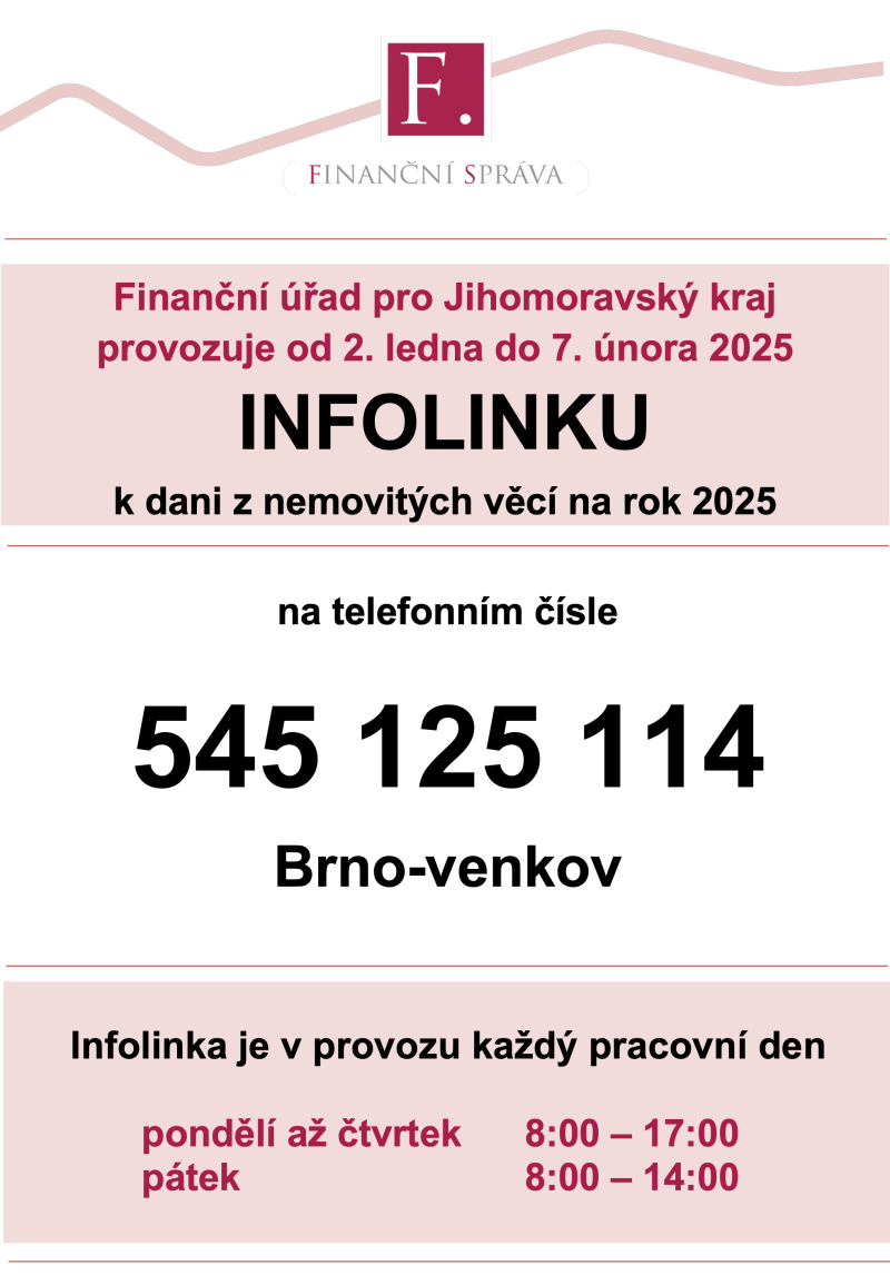 FÚ JMK provozuje infolinku k dani z nemovitých věcí na rok 2025