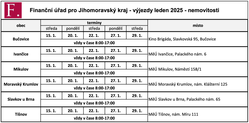 Výjezdy FÚ JMK ohledně daně z nemovitosti